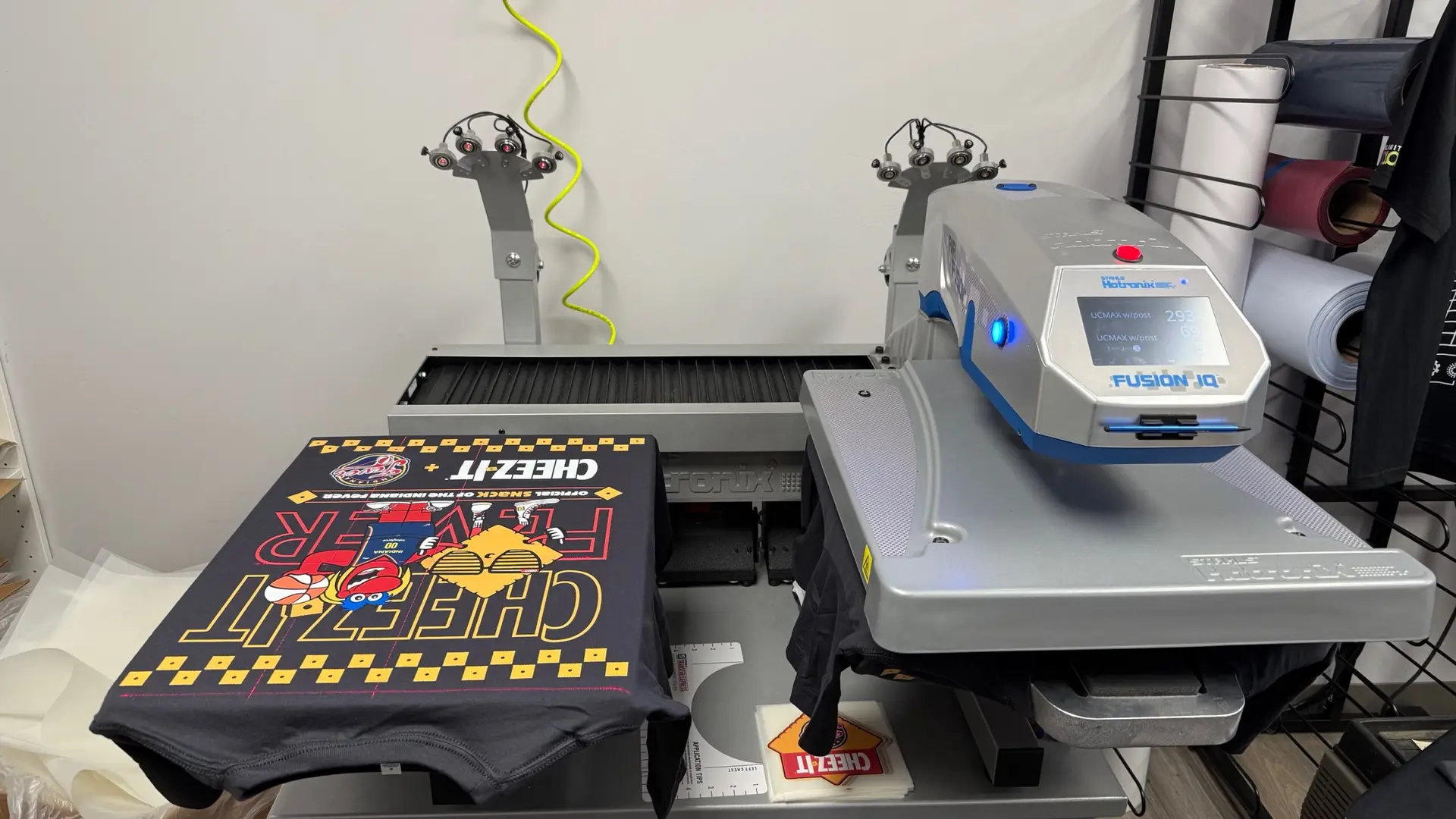 Heat printing (also called heat transfer printing) is a decoration method where a design is printed onto a special transfer material and then applied to a garment using a professional heat press. With heat and pressure, the design bonds permanently to the fabric – no thread required.
